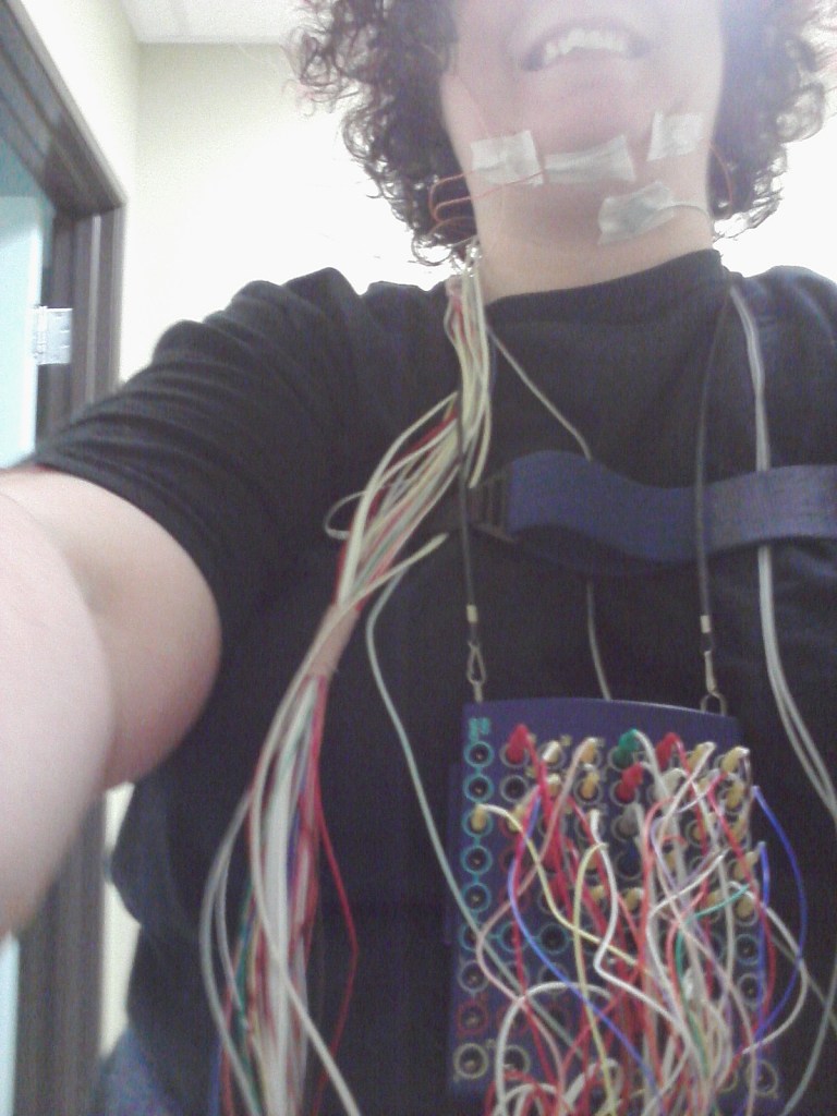 After changing in the bathroom, I sat in a chair for an hour while the nurse (technician?) wired me up. We watched Food Network.
